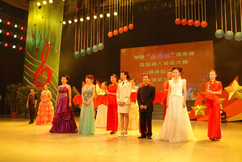 唱响伟人故里、建设文化名城。10月30晚由湘潭市文化局、湘潭市广播电视局、湘潭市文学艺术界联合会、湘潭日报社联合主办的“九华杯”湖南省首界湘人湘歌大赛湘潭总决赛在湘潭市广电中心演播大厅举行,我市选送的青年歌手杨心灵、宁左同经过初赛、复赛,最后进入了湘潭市总决赛,他们均表现出色,双双获奖。