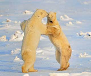 图:北极熊“情侣”跳起浪漫冰上“华尔兹”。