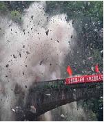 4月22日下午2时20分和3时20分,武警水电部队两次爆破炸碎了阻挡在玉溪村到宝盛乡之间的道路上的巨石,拱桥无恙。