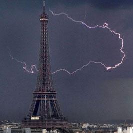 图:埃菲尔铁塔遭雷击,与闪电巧妙形成字母P。