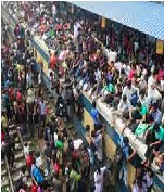 当地时间2013年10月15日,“宰牲节”将至,孟加拉国达卡大批民众登上超载的火车,甚至爬上车顶返乡过节。场面十分惊人。(新华网)