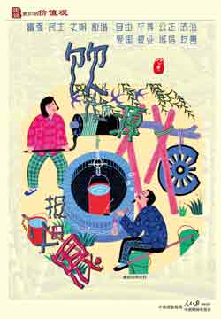 【培育和弘扬社会主义核心价值观:富强、民主、文明、和谐,自由、平等、公正、法治,爱国、敬业、诚信、友善】