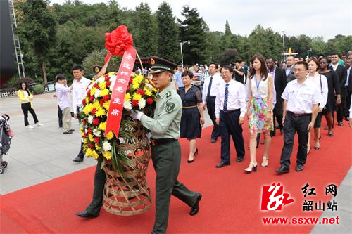 上午十点,来自坦桑尼亚、肯尼亚、巴拿马等14个国家的23名官员到达韶山后,首先来到毛泽东广场,向主席铜像敬献花篮,并深深三鞠躬,表达敬仰之情。
