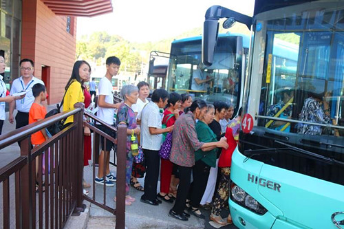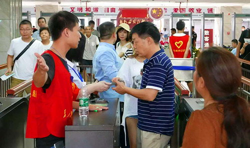 国庆假期,游客换乘中心工作人员以饱满的精神状态迎接每一位来韶游客。在换乘中心停车场,车辆指挥员尽职尽责为游客车辆停放进行引导,确保游客停车安全;在咨询台,工作人员耐心细致地为游客介绍换乘须知,解答游客咨询;在售票处,票务员亲切热情地为游客介绍景区景点;在环保车乘车处,工作人员有序组织游客验票乘车,遇到特殊游客时,立即给予热心帮助;每天40余位志愿者在换乘中心,协助维持秩序、为游客指路答疑、提供咨询等。