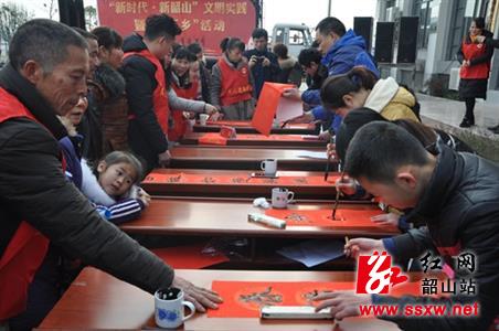 活动现场人潮涌动,市文体局组织的文艺志愿者献上了精彩的文艺演出;市委宣传部、市文明办志愿服务台前,村民争相领取印有宣传社会主义核心价值观的挂历和市民手册;市农业局服务台前,村民排队领取各种蔬果种子和科技书籍;市林业局免费发放的果树苗受到群众青睐……最惹人注目的还是市文联组织的文化志愿者现场书写新年春联,百余幅手写春联当场送出。“这才是真正的春联,比那些印刷的强多了,每一幅都不一样!”70岁的张建国老人高兴地说:“这种春联贴在门上更有年味儿。”